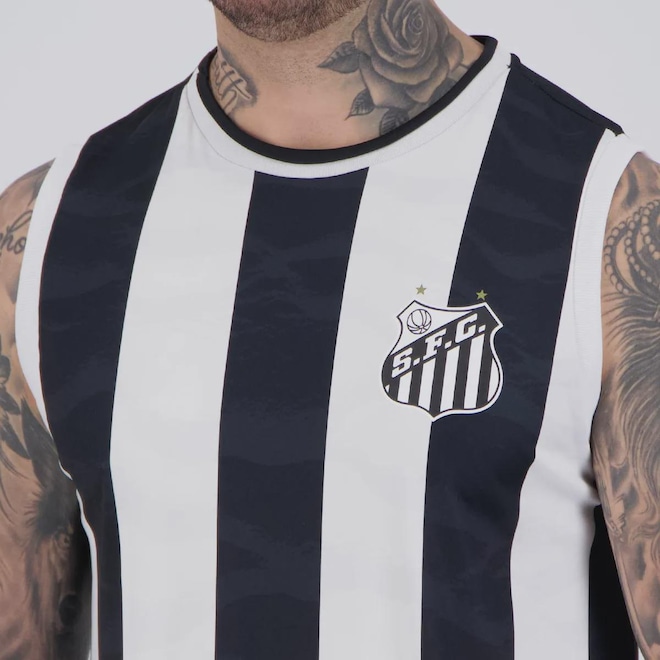Composição: 100% PoliésterCor predominante: PretaIndicado para: CasualEscudo: EstampadoGênero: MasculinoOrigem: NacionalClube: SantosManga: RegataGola: CarecaDimensões aproximadas (A x L):P: 71 x 53 cmM: 73 x 55 cmG: 75 x 57 cmGG: 77 x 59 cm