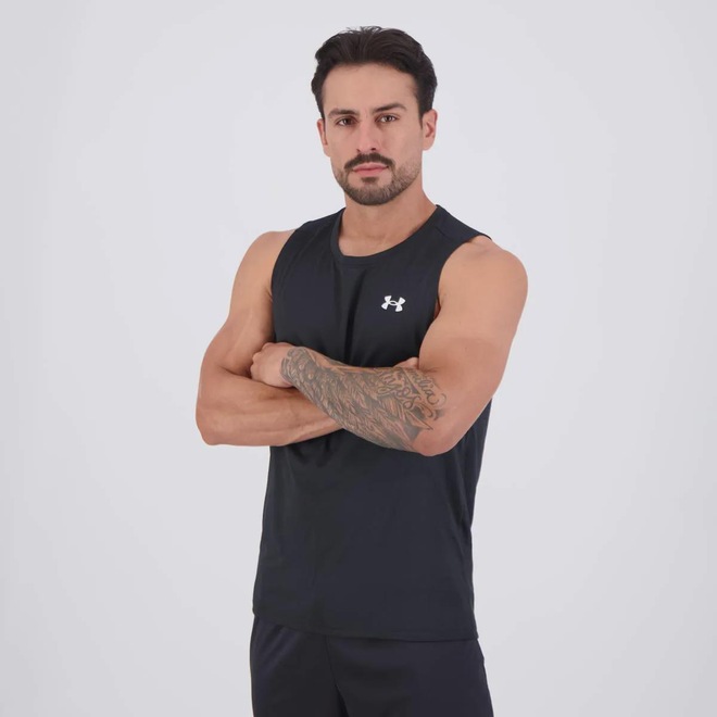 Tecnologia Heatgear®: Sistema que absorve a umidade da pele levando-a para a superfície da roupa e acelerando a evaporação. Além disso, mantém o suor longe do corpo, fornecendo maior ventilação e secagem rápida. Composição: 100% Poliéster Cor predominante: Preto Indicado para: Treino Origem: Nacional Gênero: Masculino Manga: Regata Gola: Careca Dimensões aproximadas (A x L): P: 71 x 51 cm M: 73 x 53 cm G: 75 x 55 cm GG: 77 x 57 cm
