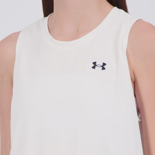 Tecnologia Heatgear®: Sistema que absorve a umidade da pele levando-a para a superfície da roupa e acelerando a evaporação. Além disso, mantém o suor longe do corpo, fornecendo maior ventilação e secagem rápida. Composição: 100% Poliéster Cor predominante: Branca Indicado para: Treino Origem: Importada Gênero: Feminino Manga: Regata Gola: Careca Dimensões aproximadas (A x L): P: 65 x 49 cm M: 67 x 51 cm G: 69 x 53 cm GG: 71 x 55 cm
