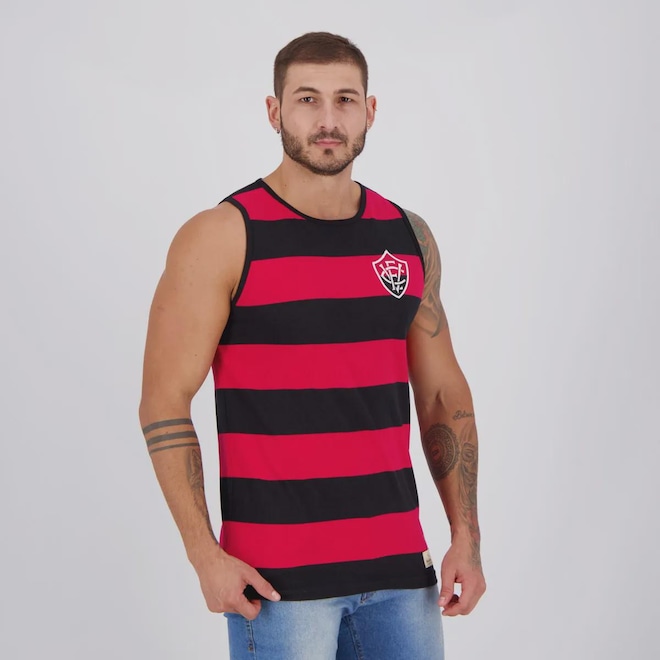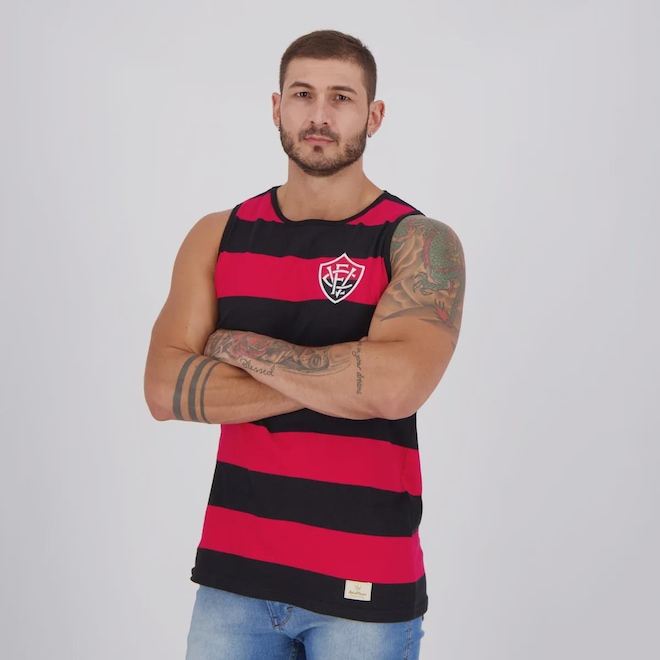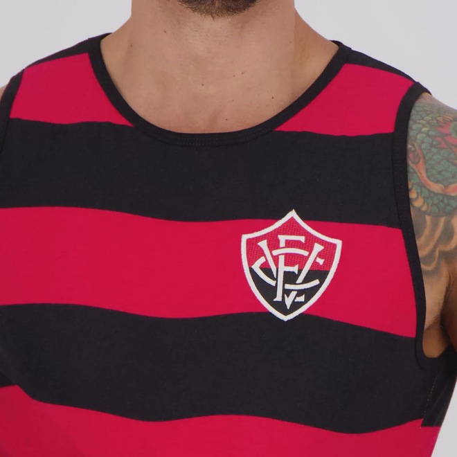 Perfeita para os torcedores Leoninos demonstrarem seu amor e orgulho do Rubro-Negro Baiano, a regata retrô do Vitória é a pedida certa. O manto faz uma homenagem ao ano de 1972, quando o time conquistou o seu oitavo título estadual com uma das melhores ataques da história do clube. Confeccionado com fibras de algodão macio, oferecendo máximo conforto e excelente caimento ao corpo. Seu design foi inspirado no uniforme utilizado naquela época, que apresenta as cores do clube, vermelho e preto, em faixas horizontais por toda a composição. O escudo da equipe aparece bordado em destaque no lado esquerdo do tórax. Por fim, a gola é careca e as mangas regatas complementam os detalhes. Adquira já!Composição: 100% AlgodãoOrigem: NacionalEscudo: BordadoManga: RegataGola: CarecaDimensões aproximadas (A x L):P: 68 x 49 cmM: 70 x 51 cmG: 72 x 53 cmGG: 74 x 55 cmEG: 76 x 57 cm