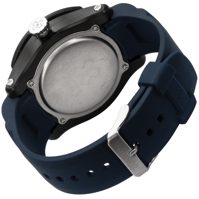 Seu mecanismo é analógico com coroa rosqueada, possui vidro em acrílico, visor negativo e a função calendário.