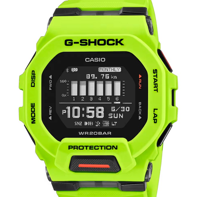 Resistente à água até 200 metros e projetado em resina de alta resistência, o GBD-200-9DR é perfeito para quem busca um relógio esportivo completo e funcional. Sua cor verde limão vibrante expressa energia, atitude e personalidade — ideal para quem se destaca dentro e fora dos treinos.