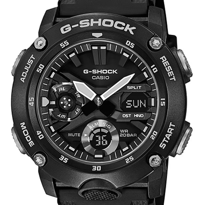 Equipado com hora mundial, cronômetro de alta precisão, timer de contagem regressiva, alarmes multifuncionais e iluminação LED dupla Super Illuminator, o GA-2000S-1ADR oferece recursos completos para qualquer ocasião. Além disso, é resistente a impactos e à água até 200 metros (20 bar), preparado para aventuras e esportes radicais.