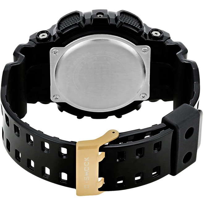 O Relógio Casio G-Shock GD-100GB-1DR é super completo e irado! ele marca mês, semana, dia, hora, minuto e segundos também possui 5 alarmes ajustáveis como também tem cronometro embutido e ajustável para facilitação da sua vida em diversas modalidades, com o visor podendo ficar no formato de horas 12 ou 24h de acordo com a sua preferencia, e também tem um letreiro brilhoso que é facilmente visto até no escuro feito em luz azul com os numeros em LED branco que acende com contato entre 1,5 á 3 segundos(ajustável) e tem fuso horário de até 4 cidades e 31 fuso horários mundiais. Além de todas as multi funções praticas dele, o mesmo é feito em material resistente a impactos fazendo-o muito resistente, aguenta pressão de até 200m embaixo d''agua e sua bateria dura impressionantes 7 anos na bateria CR2025.