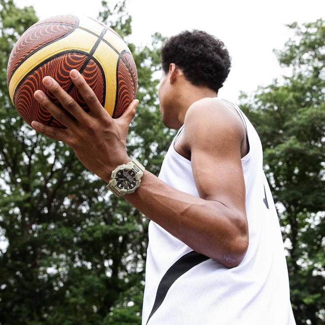 O GA-010 digital-analógico oferece recursos úteis como hora mundial e cronômetro, bem como uma luz de LED de alto brilho, que pode ser facilmente acessada a partir do grande botão na frente da caixa, garantindo visibilidade mesmo no escuro. Feito com resina de base biológica e equipado com uma bateria de 10 anos, este G-SHOCK é ótimo se você quiser reduzir o impacto ambiental. Disponível em uma seleção de esquemas de cores de estilo de trabalho baseados em preto para um design legal que transita com facilidade de cenários casuais para situações de trabalho.