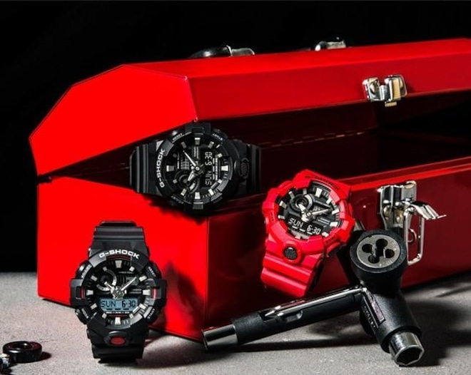 G-Shock está constantemente estabelecendo novos padrões de resistência para os relógios, apresentamos os novos modelos GA-700 ana-digi. Os ponteiros de hora e minuto parecem ter sido forjados de uma peça de metal, para um design poderoso e arrojado. A nova forma destes relógios não só melhora a leitura, mas também projeta um visual robusto.