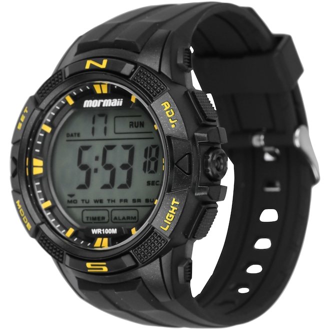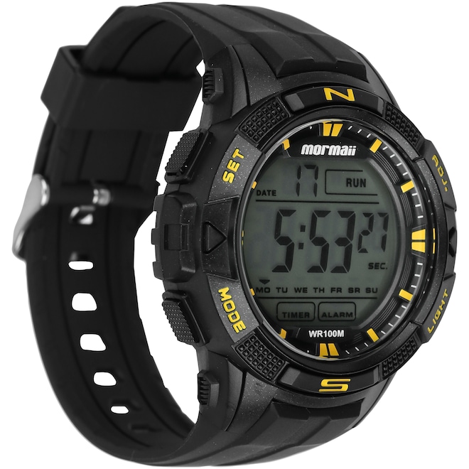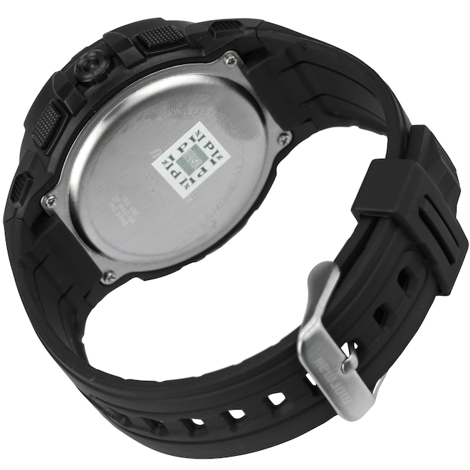 Mecanismo Digital Gênero Masculino Garantia do Fornecedor Contra Defeito de Fabricação Iluminação Noturna Sim Cronógrafo Sim Alarme Sim Timer Sim Dual Time Sim Exibição da Data Sim Resistência à Água 10ATM ou 100 M - Pode ser usado na prática de esportes marítimos. Não utilizar no mergulho técnico. Calendário Sim Material da Pulseira Borracha Duração da Bateria Aproximadamente 2 Anos Tipo de Fecho Tipo 1 - Fecho simples Cor do Visor Claro Conteúdo da Embalagem 1 Caixa