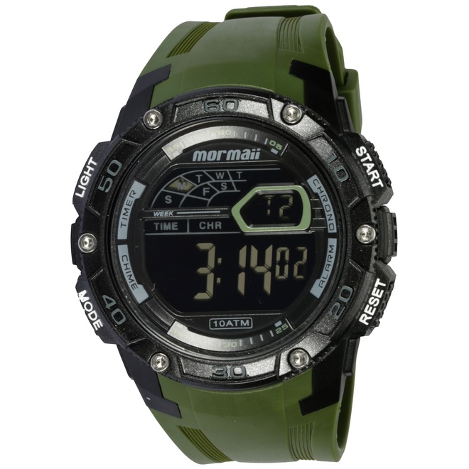 Mecanismo Digital Gênero Masculino Material da Pulseira Polímero Material da Caixa Polímero Tipo de Fecho Tipo 1 - Fecho simples Duração da Bateria Aproximadamente 2 Anos Timer Sim Dual Time Sim Alarme Sim Cronógrafo Sim Cor do Visor Escuro Resistência à Água 10ATM ou 100 M - Pode ser usado na prática de esportes marítimos. Não utilizar no mergulho técnico. Calendário Sim Iluminação Noturna Sim Garantia do Fornecedor Contra Defeito de Fabricação SAC do Fornecedor MORMAII: mormaiitech@grupotechnos.com.br Conteúdo da Embalagem 1 Certificado de Garantia