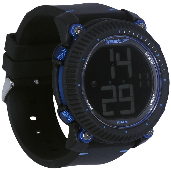 Garantia do Fornecedor Contra Defeito de Fabricação Iluminação Noturna Sim Mecanismo Digital Gênero Masculino Tipo de Fecho Tipo 1 - Fecho simples Duração da Bateria Aproximadamente 2 Anos Cronômetro Sim Calendário Sim Dual Time Sim Cor do Visor Escuro Resistência à Água 10ATM ou 100 M - Pode ser usado na prática de esportes marítimos. Não utilizar no mergulho técnico. SAC do Fornecedor SPEEDO: atendimento.cliente@seculus.com.br Material da Pulseira Silicone Material da Caixa PU (Poliuretano) Alarme Sim Conteúdo da Embalagem 1 Relógio