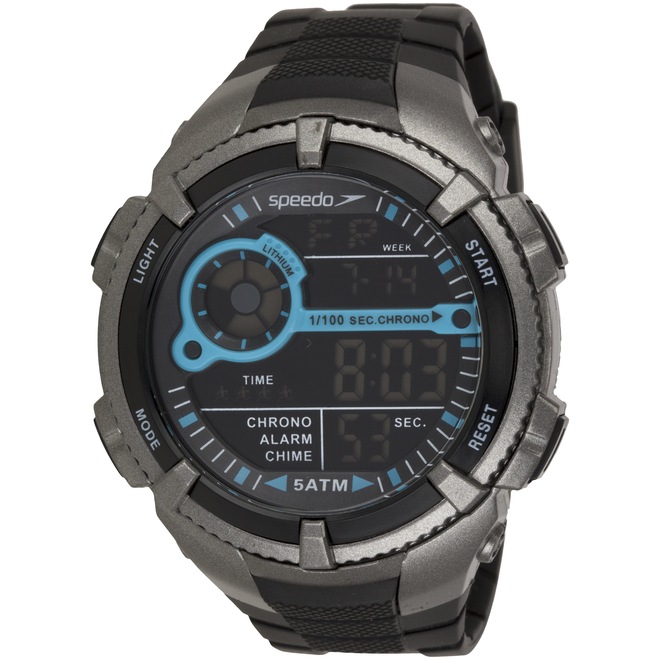 Com design esportivo e moderno, o Relógio Speedo 81130G0EV possui mecanismo digital e funções como alarme, cronômetro, chime, que quando ativado, emite um sinal sonoro em horários cheios, além de iluminação noturna que facilita a visibilidade do visor em locais de pouca luz. Já a resistência em 5ATM ou 50 metros do relógio de pulso masculino permite o uso na natação, porém, não na prática de esportes marítimos, conforme orientação do fabricante.