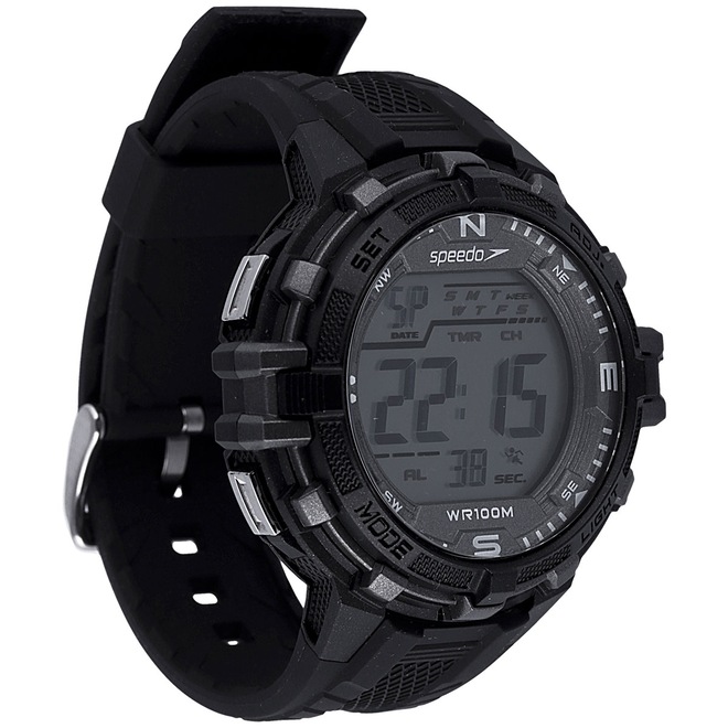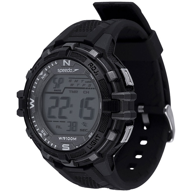 Mecanismo Digital Gênero Masculino Material da Caixa Plástico Duração da Bateria Aproximadamente 2 Anos Tipo de Fecho Tipo 1 - Fecho simples Timer Não Dual Time Sim Cor do Visor Escuro À Prova d'Água Sim Resistência à Água 10ATM ou 100 M - Pode ser usado na prática de esportes marítimos. Não utilizar no mergulho técnico. Exibição da Data Sim Alarme Sim Calendário Não Cronógrafo Não Iluminação Noturna Sim Cronômetro Sim Nível Amador