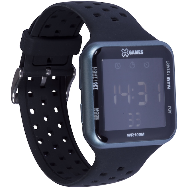 Com design diferenciado e estiloso, esse Relógio Digital X-Games apresenta caixa em policarbonato, pulseira em PU (poliuretano) e visor com fundo negativo ou escuro. Multifunção, o relógio de pulso feminino apresenta timer, dual time ou hora dupla, alarme, calendário, cronógrafo e iluminação noturna para facilitar a visibilidade do visor em locais pouco iluminados. Já a resistência em 10ATM ou 100 metros garante o uso em esportes marítimos, porém não em mergulho técnico, conforme orientações do fabricante. Junto com o X-Games, acompanham embalagem, manual e certificado de garantia. Aproveite o ótimo preço e curta seus melhores momentos com a qualidade X-Games. Compre já!ref: 912338