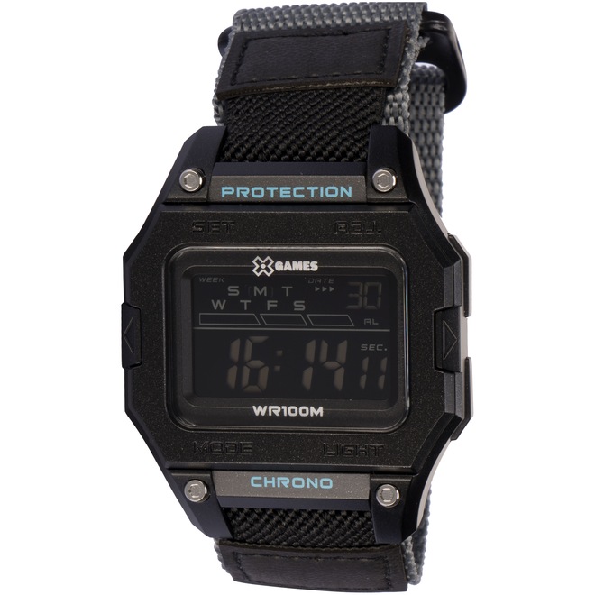 Diferenciado com pulseira têxtil e um design esportivo moderno, esse Relógio Digital X Games é a escolha certa para as atividades diárias e lazer. Multifunção, o relógio de pulso X Games possui timer, dual time ou hora dupla, alarme, calendário, cronógrafo e até iluminação noturna para mais nitidez na visibilidade das funções em locais de pouca luz. Já a resistência à água em 10ATM, permite o uso na prática de esportes marítimos, mas não em mergulho técnico, conforme orientações do fabricante. Junto com o X Games Unissex, uma prática embalagem, certificado de garantia e manual de instruções acompanham o acessório. Confira o preço e compre o seu!