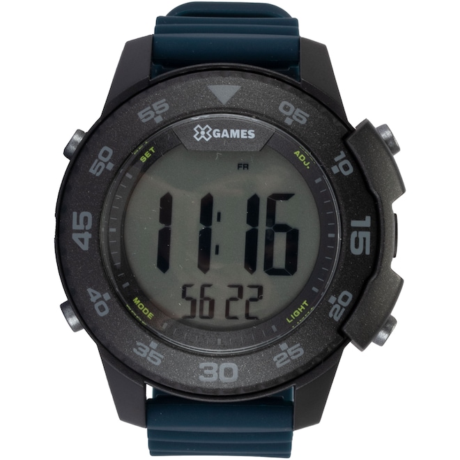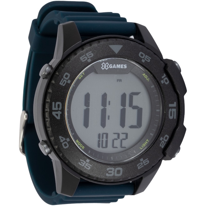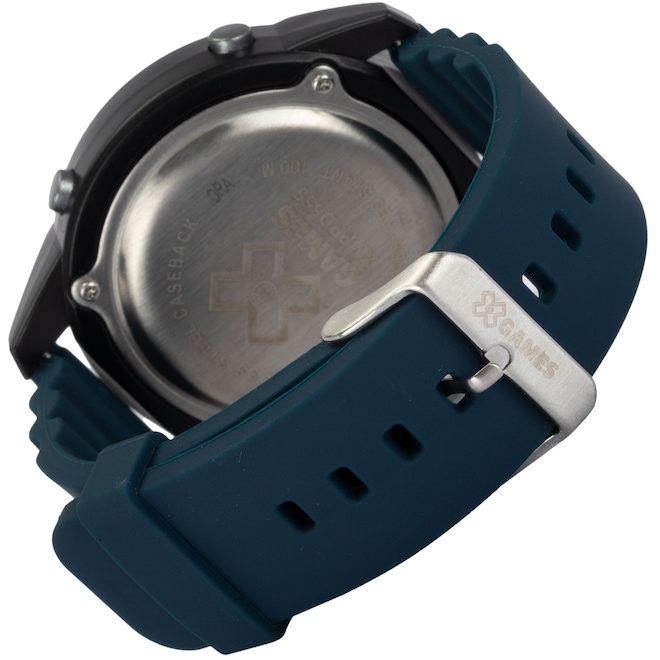 Com design esportivo e moderno, o Relógio X Games possui mecanismo digital, caixa em policarbonato e pulseira maleável em silicone.
