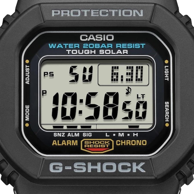 Esses modelos Tough Solar oferecem uma escolha entre o design G-5600 G-SHOCK original e o design G-6900 que é tão popular entre os seguidores da moda urbana de hoje em dia. O sistema Tough Solar, equipado sem alterar o design básico dos relógios, possibilita a geração de energia suficiente para manter o relógio em funcionamento com exposição mínima à luz normal. Os designs simples desses relógios foram obtidos com a eliminação do máximo de cores e de decorações.
