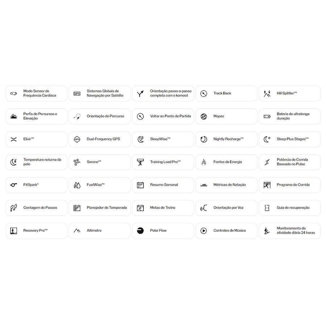 Todo atleta tem um sonho. O Polar Vantage V3 é a realização desse sonho. Ele foi projetado para te impulsionar em qualquer tipo de esforço humano: nos esportes, na performance e na vida. Com uma combinação de instrumentos biossensores, tela AMOLED, GPS de dupla frequência, mapas e o mais abrangente conjunto de ferramentas de treino e recuperação do setor, o Vantage V3 é o Polar mais poderoso que existe. Além disso, é capaz de garantir vários dias de bateria com uma única carga e vem com novidades incríveis, como sensores de ECG no punho, mensuração do nível de oxigénio no sangue (SpO2) e temperatura da pele. O palco está montado, e o relógio esportivo inteligente Polar Vantage V3 está pronto para apresentar o desempenho de sua vida. Tudo que você precisa fazer é despertar o atleta em você! Capacidade da bateria: 488 mAh. Duração da bateria no modo treino até: 61 h. Apresenta uma tela de 1,39 polegada. Resolução da tela: 454 × 454. Armazenamento: 32MB. Memória: 37MB. Resistente à água: WR50. Versão de Bluetooth: 5.1. Dimensões: 47 x 50.8 x 14.5 mm (Largura x Altura x Espessura). Peso total: 57g (somente caixa: 39g).