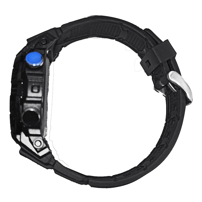Com caixa de 47,32mm, este modelo combina resistência com estilo esportivo. Sua pulseira em silicone preto texturizado oferece conforto durante o uso prolongado, enquanto os botões metálicos realçam o estilo tático do relógio. O visor digital exibe hora, dia da semana, calendário e alarme com excelente contraste e legibilidade. O modelo conta ainda com cronômetro, iluminação noturna e resistência à água de 10 ATM (100 metros), sendo uma ótima opção para atividades aquáticas leves e esportes de impacto.PRINCIPAIS CARACTERISTICAS: