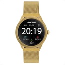 Pulseira em aço inoxidável tipo mesh, com fecho ajustável.