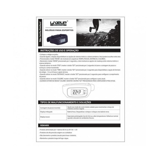 Relógio Pedômetro Liveup com Contador Digital Passos e Calorias