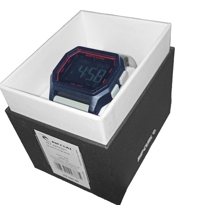 O Relógio Rip Curl Atom em em um estilo mais esportivo, todo emborrachado e resistente à água. Possui o mostrador com o fundo preto, com hora, data e temperatura no display, luz de fundo e função cronômetro. Um relógio completo que vem com as mais diversas funções: Timer, Alarme, Calendário, Cronômetro, o relógio possui 25cm de ponta a ponta da pulseira.