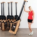 Para facilitar o transporte do remo e o pós treino, na hora de guardar seu equipamento, o Remo A1 pode ser guardado em pé, além de ser compacto e possuir rodinhas para transporte.