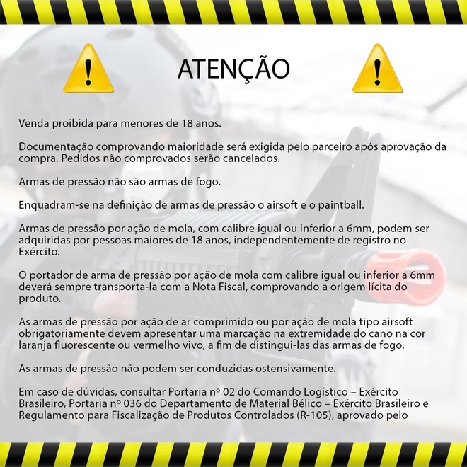 Calibre: 6mm- Velocidade com BBs 0,20g: 280fps (85m/s)