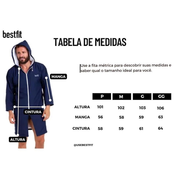 Roupão Best Fit adulto, desenvolvido para praticantes de atividades ligadas à natação. Modelo confortável, comprido e com bolsos laterais. O roupão com capuz possui ajuste de cordão, forro atoalhado e fechamento em zíper. Facilidade de manutenção, excelente absorção e secagem eficaz em um roupão adulto cheio de estilo! Benefícios: Conforto Secagem eficaz Excelente absorção Características: Facilidade de manutenção Rápida secagem Mangas longas Possui capuz Fechamento com zíper Composição: 100% Poliéster, 80% Algodão e 20% Poliéster IMAGENS MERAMENTE ILUSTRATIVAS.ref: M13H65