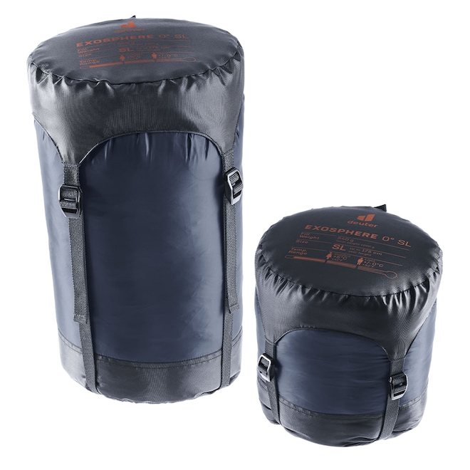 Marca: Deuter Modelo: Exosphere 0° SL Material: Poliester 100% reciclável Thermo Pro Loft® Temperatura Conforto: 5°C Temperatura Limite: 0°C Temperatura Extrema: -16°C Peso: 920g + 70g do saco de compressão Medidas:198 x 68-85 x 43-54 cm Garantia: 2 anos contra defeitos de fabricação Volume: 6 Litros Ergonomia Feminina: Adaptado para a ergonomia feminina
