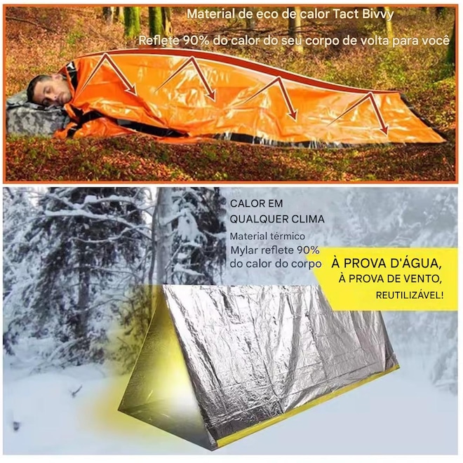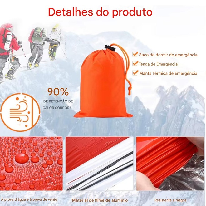 - Sobre o produto - Recurso - 1. Facilidade de uso - Mais fácil do que uma manta espacial de emergência, basta retirar do saco de coisas, desenrolar e subir dentro.saco de dormir de emergência pode ser usado - como forro de saco de dormir para manter a temperatura do corpo. Esta bolsa é pequena e leve, fácil de transportar e guardar. - 2.Durabilidade - O kit de saco de dormir de sobrevivência Gold Sports de emergência é construído em material mylar extra grosso de 26um, à prova d'água e reutilizável.Pode ser dobrado - e colocado de volta dentro do saco impermeável de nylon para sua próxima aventura .Um equipamento de acampamento indispensável para acampar, fazer caminhadas e ao ar livre. - 3.Manter a temperatura corporal - As bolsas de emergência Gold Sports são feitas de filme de poliéster reflexivo durável que pode aumentar a temperatura corporal em até 20 graus - em condições climáticas frias e adversas.É obrigatório para mau tempo e aventuras ao ar livre, como vento, chuva forte e neve forte. - 4. Feito para emergências - Multiuso usado como cobertor de emergência de sobrevivência, poncho, abrigo de emergência e muito mais, adequado para seu inseto - Conteúdo da embalagem: 1 × saco de dormir de sobrevivência. - 5. Contém: 1 apito no saco de guardar para casos de ajuda na sobrevivência - Tamanho: - As dimensões abertas são 200 cm x 90 cm (78 x 36 pol.) - Material: mylar e polyester - Marca Gold Sports - Garantia:30 dias contra defeito de fabricação - ref: M16R48