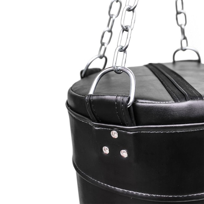 Pode bater a vontade pois a lona não desgasta com chutes e socos! O produto possui quatro pontas de apoio acompanhadas com argolas, correntes e um exclusivo sistema de mosquetão, pronto para pendurá-lo! Zíper na boca para facilitar o enchimento! Especificações: Medidas: 120 cm de altura x 100 cm de circunferência Produto enviado VAZIO Peso suportado: até 70 kg.