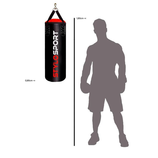 ? 01 (um) Par de Luvas Bate Saco Infantil ? 01 (um) Saco de pancada vazio 90 cm x 100 cm. ? 01 (um) Exclusivo Gancho S FICHA TÉCNICA: - SACO DE PANCADA - STYLO SPORT 90 x 100 ? Alça reforçada com costura dupla. ? 04 pontas de apoio. ? Duas meias argolas costuradas às alças do saco. ? Zíper éclair na parte superior facilitando o enchimento. ? Fabricado em PU de alta resistência. ? 100 cm de circunferência. ? Cor com detalhes . LUVA BATE SACO - STYLO SPORT ? Tamanho: INFANTIL (Recomendado para crianças de 04 a 07 anos) ? Confeccionada em material PU. ? Revestimento interno em tecido resistente a umidade. ? Fecho no pulso em elástico. ? Polegar exposto. ? Enchimento em espuma de alta densidade. Observação: Sacos de pancadas são vendidos e enviados sem enchimento, acompanha guia de instrução para o enchimento: O peso vai ser relativo ao material utilizado para encher. Indicamos o uso de retalhos de tecido misto (encontra em oficina de costura), serragem (encontra em madeireira ou marcenaria) ou raspas de pneu (encontra em recauchutadora). BENEFÍCIOS: ? O PU (Poliuretano), usado na confecção do saco é um material de alta resistência, pois o revestimento interno é feito em Nylon trançado, além de que o PU é adquirido novo e inteiro não utilizamos sucatas e não fazemos uso de remendos o que garante mais vida útil, qualidade e resistência ao produto. ? Os quatro pontos de apoio são um benefício excelente, pois permite que o peso seja distribuído igualmente nas alças evitando que algum lado fique sobrecarregado e se rompa. INDICAÇÃO: Treino de socos e chutes altos. IMPORTANTE! Não é possível alteração do produto e endereço de entrega após finalização da compra. AVISO! Pirataria é crime, não utilize produtos falsificados. ? Produto enviado com nota fiscal. ? Garantia 8 meses Fabricado no Brasil por Stylo Sport.ref: M0Z5O9