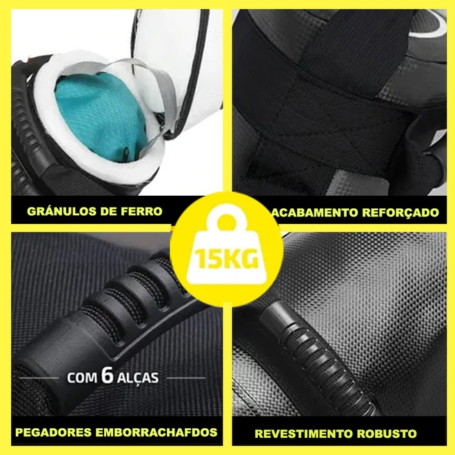 O Saco Power Bag Gold Sports Resistência IV 15Kgs, Saco de grânulos de ferro com revestimento resistente, ideal para treinamentos funcionais e musculação, Ajuda no ganho de massa muscular, alongamento, fisioterapia, agilidade etc...O Saco Power Bag Gold Sports Resistência IV 15Kgs possui resistência diferenciada, revestimentos internos em espuma o que oferece mais conforto durante os treinos, não machuca os ombros além de uma maior absorção de impactos. O Saco Power Bag Gold Sports Resistência IV 15Kgs e confeccionado em material robusto com costura reforçada, e com pegadores emborrachados.