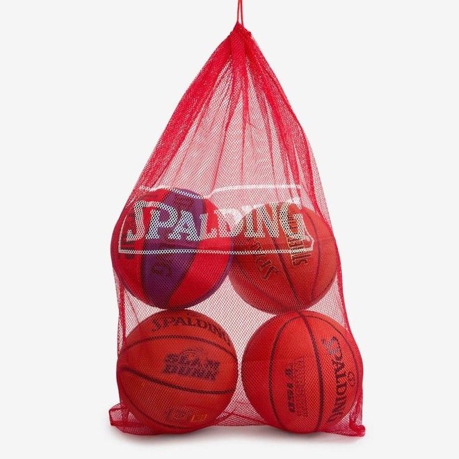Porta bolas Spalding em tecido resistente e tela. Transporta até 6 bolas tamanho oficial. Possui fechamento em cordão e alça de transporte ajustável. Solução para transporte adequado de bolas nos treinos e jogos.