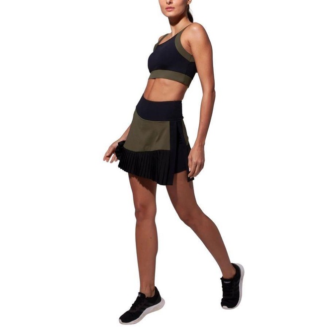 A Saia da Linha Vision possui shorts interno ajustado ao corpo para maior liberdade de movimentos. Conta ainda com saia plissada com detalhe assimétrico em cor diferenciada. Sua coleção foi inspirada na arquitetura Bauhaus, famosa na década de 60. A estética do movimento se utilizava de linhas retas em um visual clean e minimalista, com poucos pontos de cor. É ideal para vestir na academia, na aula de yoga e alongamento, além de poder ser usada em seu look casual. Sua malha é composta de 84% Poliamida e 16% Elastano. Isso torna a peça sempre fresca e leve para seu treino ser ainda melhor.