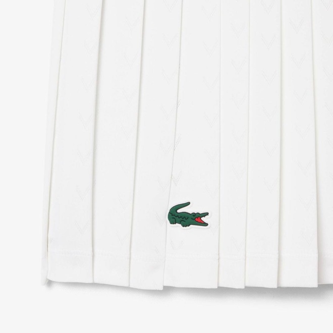 Esta saia, usada por jogadoras da Lacoste no torneio de Londres, é fruto de anos de expertise em moda esportiva elegante. Confeccionada em malha stretch para maior conforto, com sutis motivos rendados e tecnologia Ultra Dry com ação antiodor. Um design técnico que incorpora pregas icônicas para um visual sofisticado e feminino.