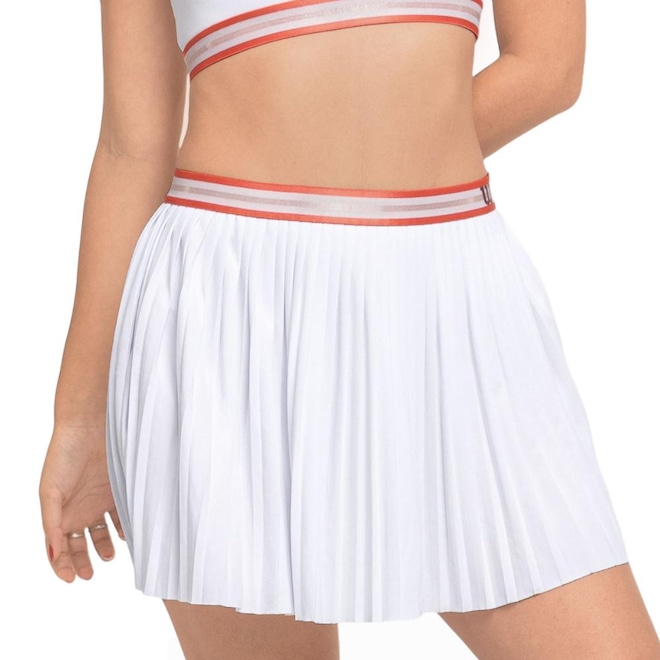 - Detalhamento: Cós em elástico com listras em cor contrastante para melhor ajuste, saia confeccionada em poliéster plissada com pregas bem marcadas que dão movimento e leveza favorecendo a liberdade de movimentos, logo Wilson em destaque no cós, caimento tradicional;