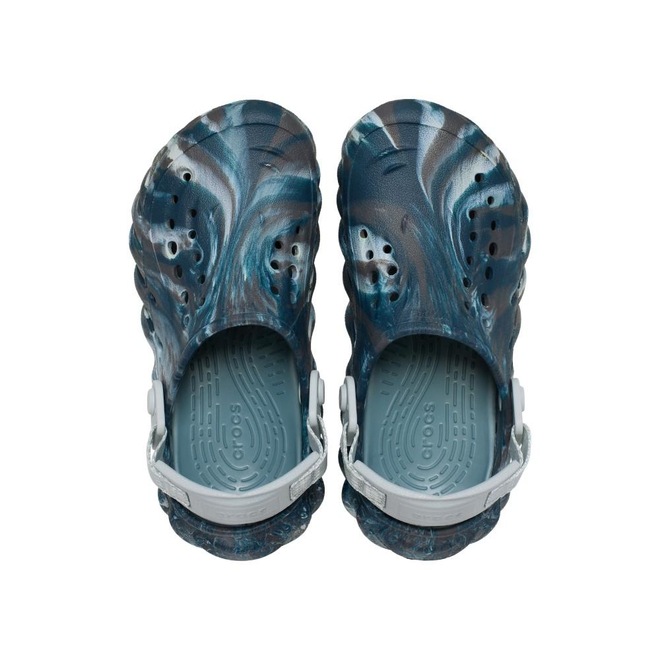 A coleção echo é para aqueles que querem conforto sem comprometer seu estilo. este estilo totalmente moldado é tudo menos conformista, com esculturas ousadas e inspiração esportiva que mantém o streetwear em seu núcleo. com construção em croslite marmorizado e uma palmilha literide drop-in, as crianças podem ficar confortáveis enquanto permanecem estilosas na coleção echo. detalhes: efeito marmorizado único para cada calçado. incrivelmente leve e fácil de usar. parte superior e base totalmente moldadas em croslite. amigável à água e flutuante, levíssimo orifícios de ventilação adicionam respirabilidade e ajudam a eliminar água. fácil de limpar e rápido para secar. almofada no calcanhar na tira traseira para conforto extra. personalizável com jibbitz. suporte de dupla densidade com sola em croslite e palmilha literide. as imagens do site podem sofrer pequena alteração de cor dependendo do monitor e da resolução em que elas sejam visualizadas.