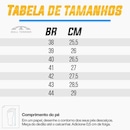 Seu cabedal conta com duas tiras confeccionadas em couro e material têxtil acolchoado, que torna o contato com os pés mais confortável. A palmilha anatômica é feita em borracha e possui a tecnologia Ortho Comfort.