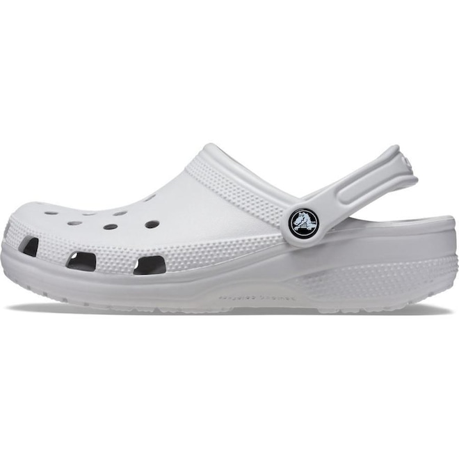 detalhes do classic crocs: aberturas que aumentam a ventilação do calçado e ajudam a drenar a água flutua na água e pesa apenas alguns gramas.