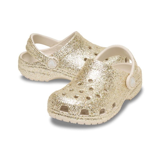 Sandália Crocs Classic Chunky Glitter Clog T  Sandstone - Infantil - Foto 1