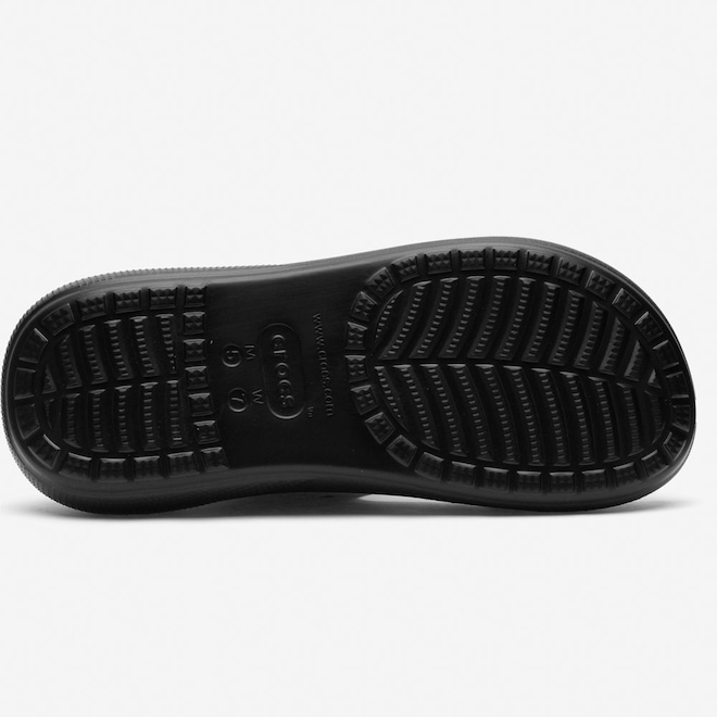 Tira Resina - Croslite™ Solado Detalhes emborrachados em locais estratégicos para aderência e durabilidade em zonas de alto impacto Palmilha Texturizada Garantia do Fornecedor Contra Defeito de Fabricação Conteúdo da Embalagem 1 Par SAC do Fornecedor CROCS: atendimento@crocs.com.br