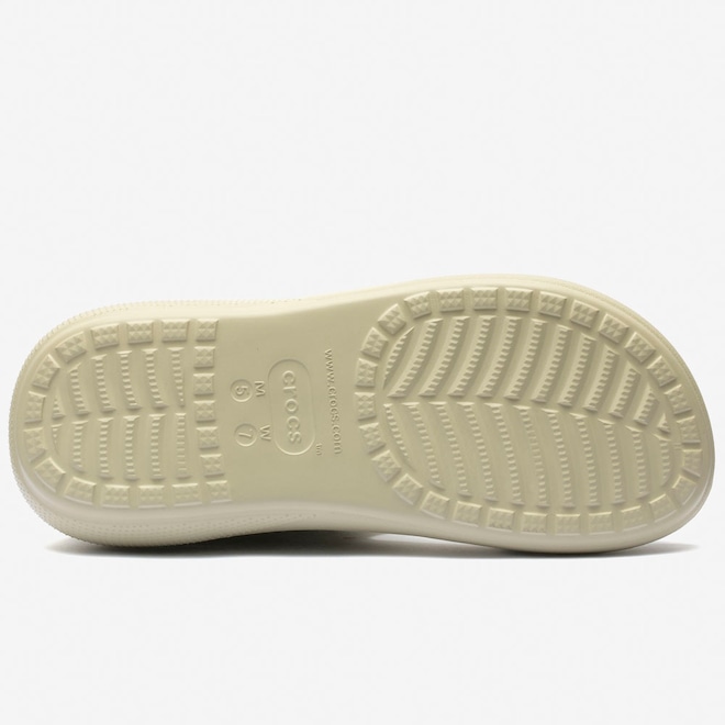 Tira Resina - Croslite™ Solado Detalhes emborrachados em locais estratégicos para aderência e durabilidade em zonas de alto impacto Palmilha Texturizada Garantia do Fornecedor Contra Defeito de Fabricação Conteúdo da Embalagem 1 Par SAC do Fornecedor CROCS: atendimento@crocs.com.br