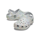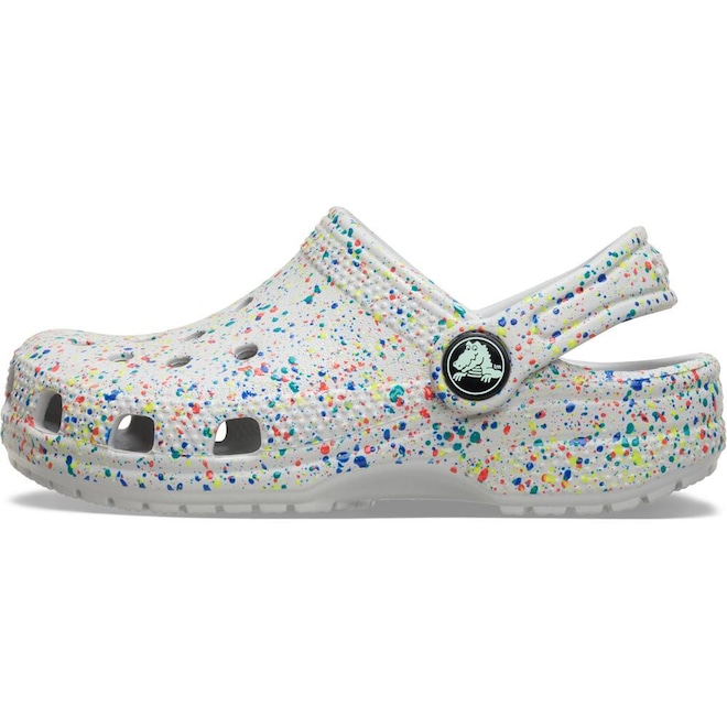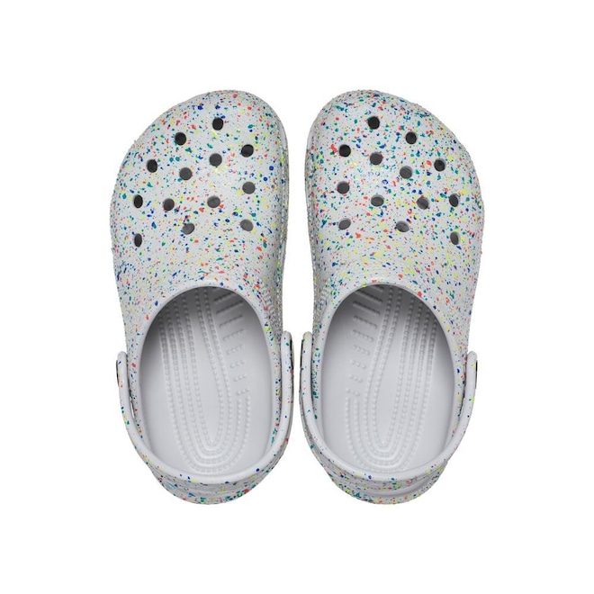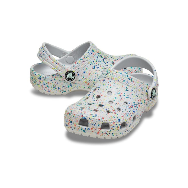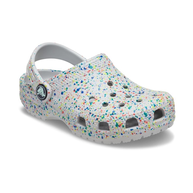 Dias claros, noites radiantes, crianças felizes. Os Clogs Crocs com respingos de tinta que brilham no escuro trazem um toque divertido e criativo à silhueta icônica dos Crocs, com um design ousado e artístico. Leves, fáceis de calçar e feitos para crianças que adoram brilhar do seu jeito. Conforto em primeiro lugar, personalidade radiante.