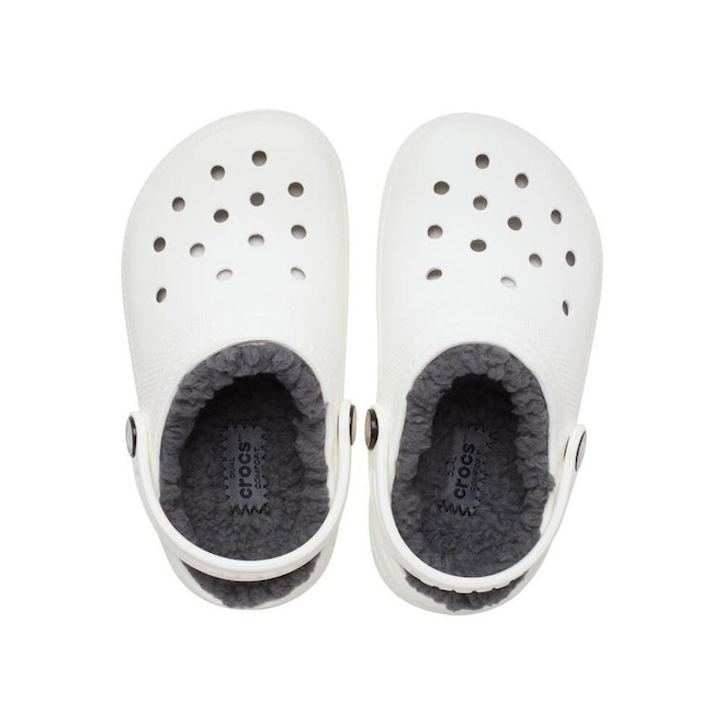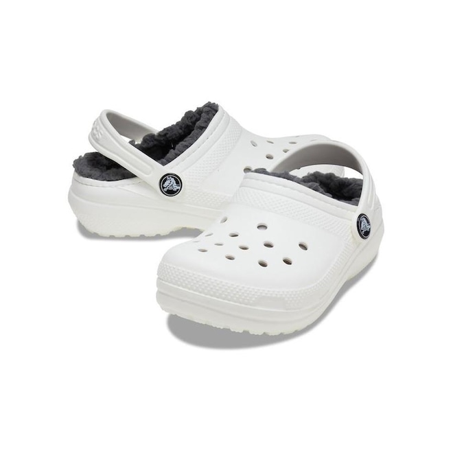 o lendário clássico de crianças, agora com um forro quentinho incrivelmente leve e fácil de usar tiras de calcanhar para um ajuste mais seguro ótimo para usar dentro ou fora de casa customizável com jibbitz dual crocs comfort : suave. confortável. fuzz liner: feito de 100% poliéster