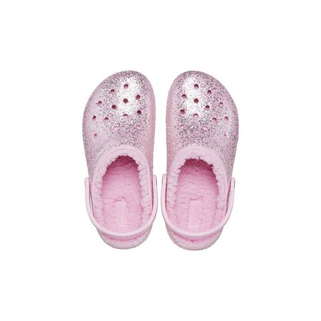 Sandália Crocs Classic Lined Glitter Clog T Flamingo - Feminino
