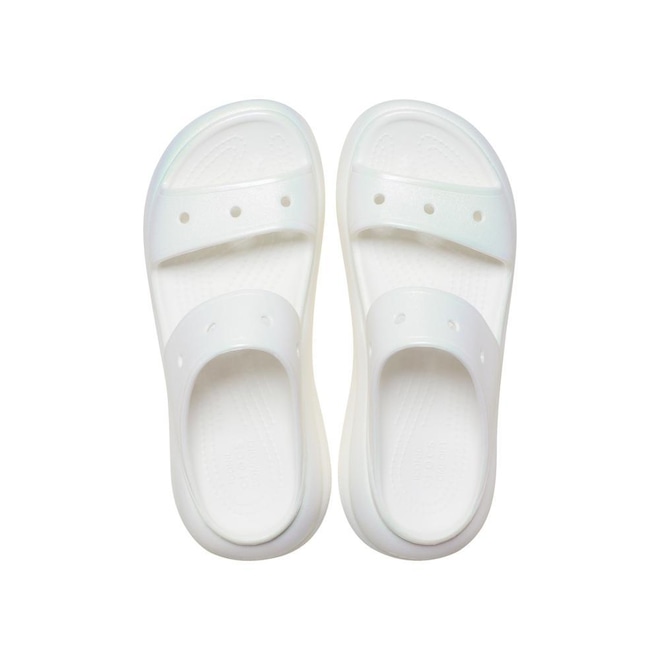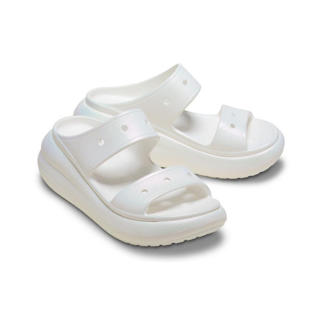 Para uma nova versão da sua sandália favorita, confira a Sandália Crush Iridescent. Esta nova sandália dinâmica apresenta um tratamento iridescente exclusivo, design versátil com duas tiras, estilo arrojado e altura extra. Além disso, os furos Jibbitz nas tiras facilitam a personalização. O conforto Crocs que você adora, com uma dose extra de altura, atitude e estilo.