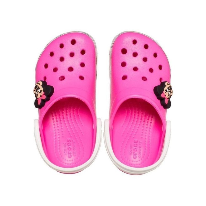 Sandália Crocs Fun Lab Minnie Mouse Band Clog Electric - Infantil- Bandas e uppers com gráficos de minnie mouse, onde as crianças podem interagir com eles