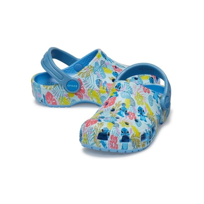 É o icônico que iniciou uma revolução de conforto em todo o mundo, agora apresentando seu personagem azul peojetado favorito, semelhante a um cachorro. nestes clogs exclusivos, você desfrutará de charmosos enfeites da disney stitch na parte superior, e a construção em espuma croslite os matém leves e facéis de usar. eles são uma maneira divertida e moderna de mostrar seu amor pelo travesso e adorável experimento 626 da disney.ref: M13WYI