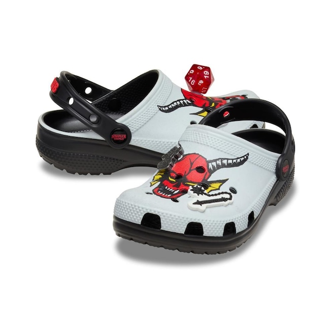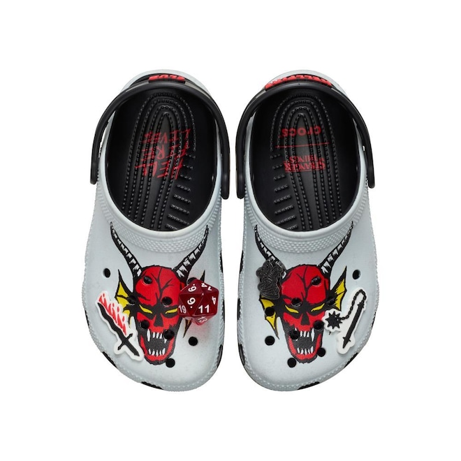 Você e seu clube vão arrasar com o Clog Clássico Hellfire de Stranger Things. Homenageando os membros desajustados do grupo, este par apresenta o logo demoníaco inspirado no heavy metal na parte superior e quatro Jibbitz exclusivos, incluindo um dado d20, um dragão de metal e muito mais. Comece todas as suas aventuras com este clássico icônico.