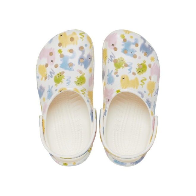 Uma estampa divertida de sapos, cachorros, gatos e coelhos em cores pastéis de primavera adiciona estilo a esta versão do icônico clog. o gráfico exclusivo torna-os ainda mais divertidos e a construção em espuma croslite os mantém leves e fáceis de usar. fundamentado no conforto, repleto de personalidade. gráfico divertido estampado de animais de estimação em tons pastéis incrivelmente leve e divertido de usar fácil de limpar e rápido de secar tiras giratórias no calcanhar para um ajuste mais seguro personalizável com jibbitz iconic crocs comfort: leve. flexível. conforto de 360 ??graus.